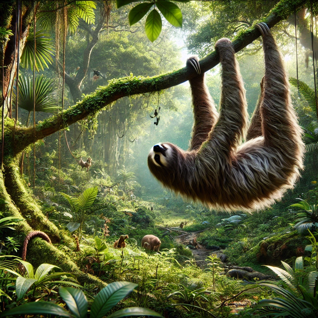 나무늘보는 그 이름처럼 매우 느린 속도로 움직입니다. 이들의 느린 속도는 에너지를 절약하기 위한 적응으로, 먹이인 나뭇잎을 소화하는 데 많은 시간이 필요하기 때문입니다. 나무늘보는 하루 중 대부분을 나무에 매달려 보내며, 일주일에 한 번 정도만 배변을 하기 위해 땅으로 내려옵니다. 이 과정은 매우 위험하지만, 이들은 적에게 잘 발견되지 않기 위해 나뭇가지와 같은 색깔의 털을 가지고 있습니다.