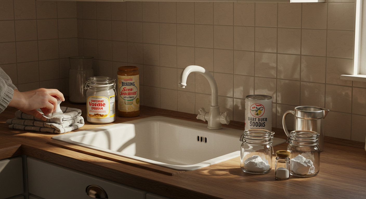- 배수구에 베이킹소다 한 컵을 넣는다.